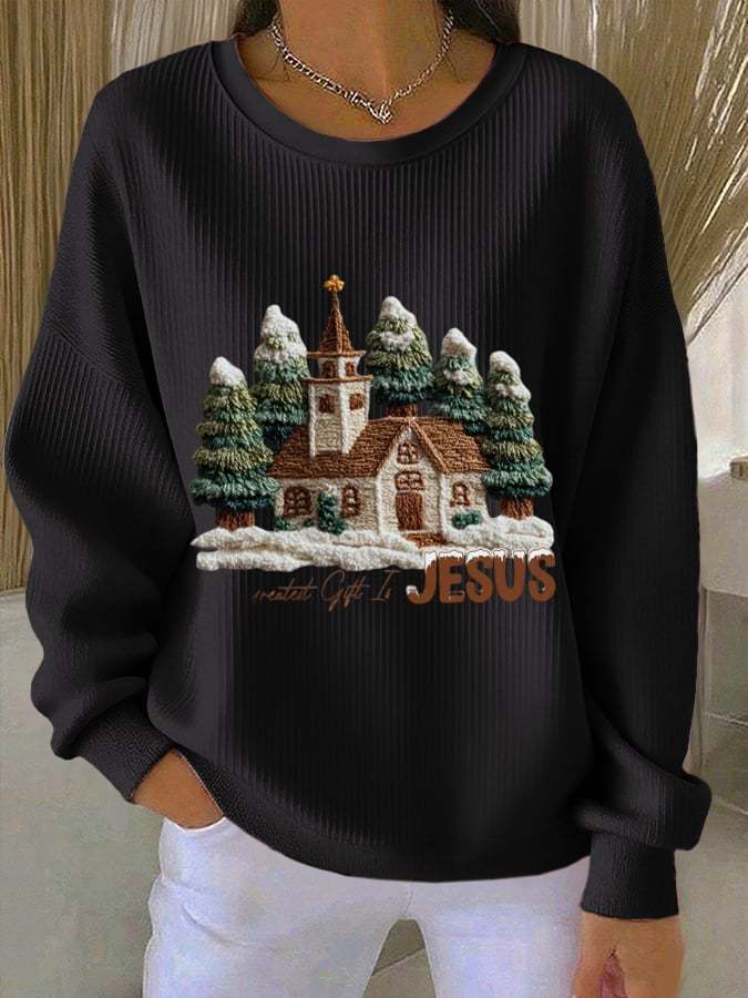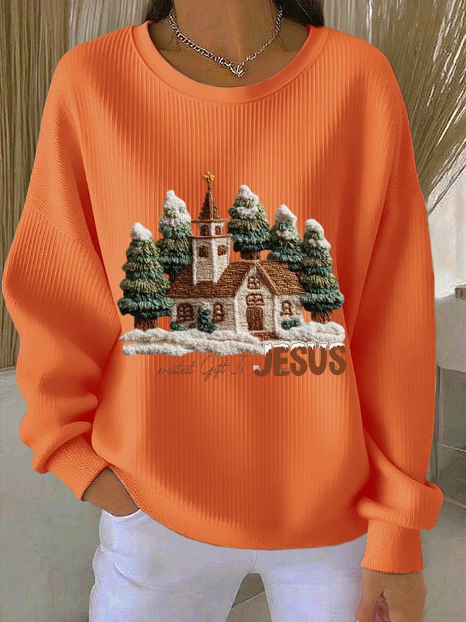 Women's Christmas Faith Jesus Church Printed Sweatshirt