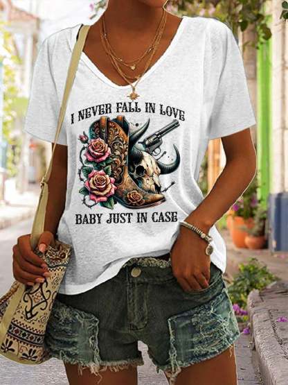 Women's I Never Fall In Love Baby Just In Case Printed Short-Sleeved T-Shirt