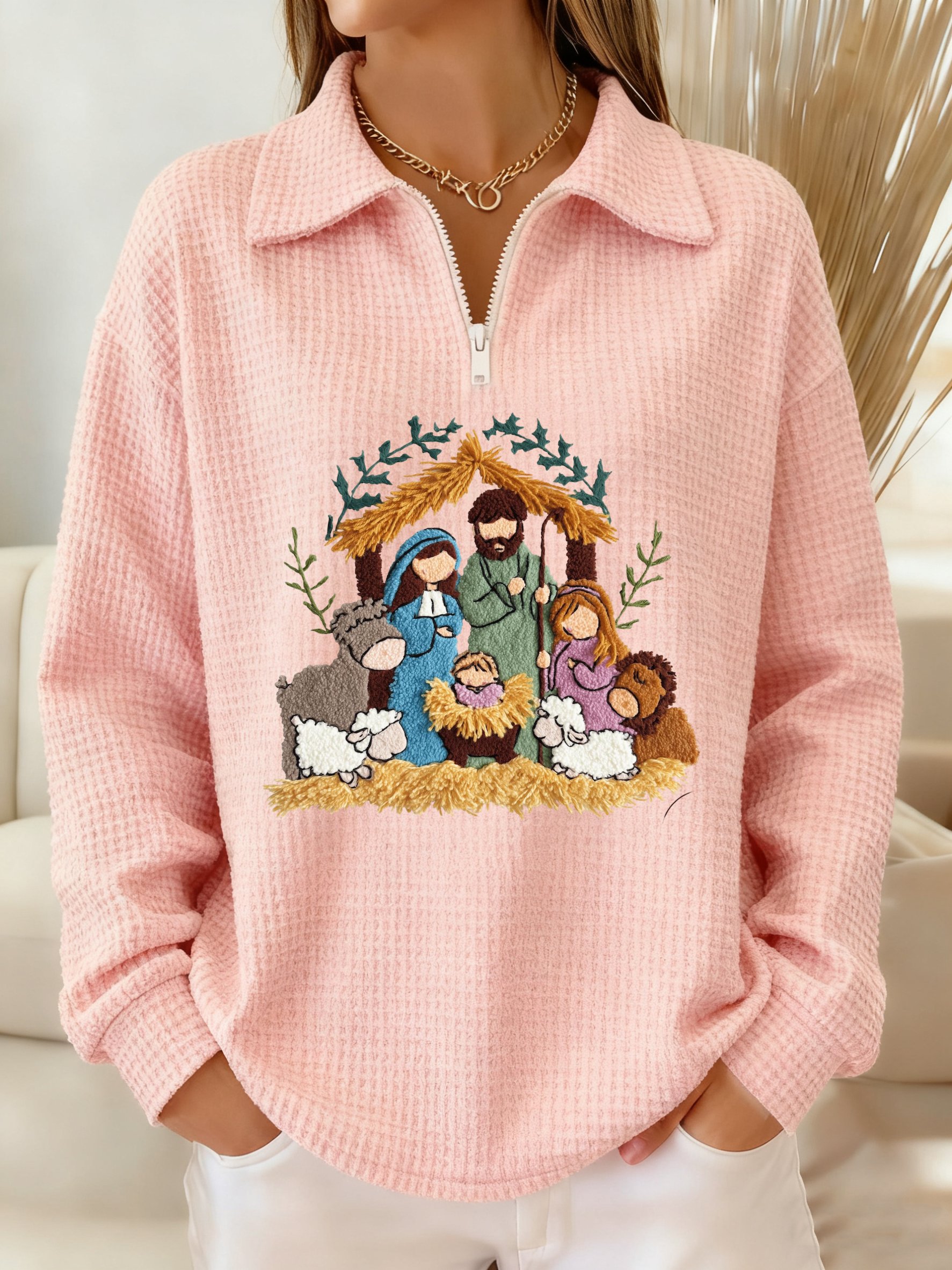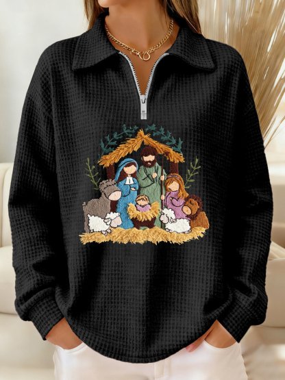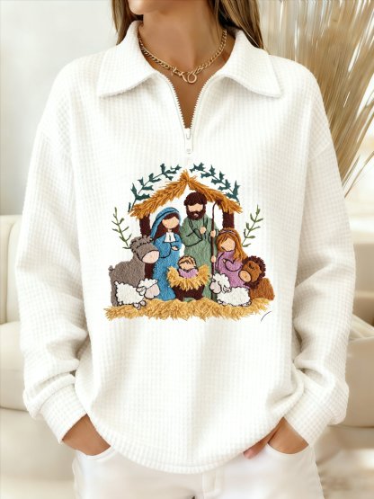 Women's Winter Christmas Faith Print Lapel Top
