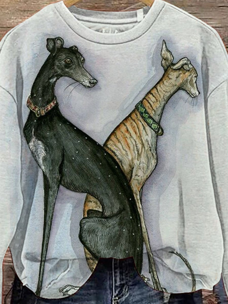 Hound Dog Art Print Casual Cotton Short Sleeve T-shirt