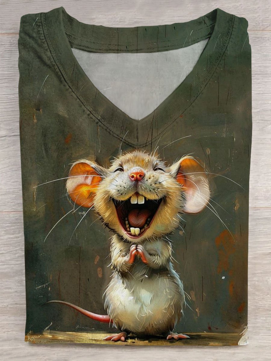 Women's Cute Mouse Art Print V-neck Casual T-Shirt