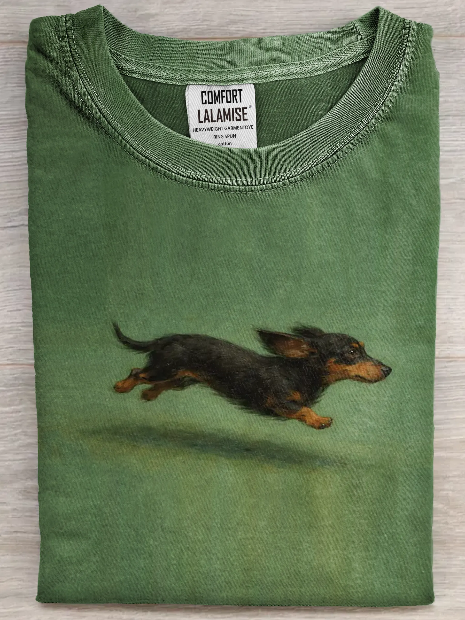 Funny Retro Cute Running Dog Art Print Casual Cotton Short Sleeve T-shirt