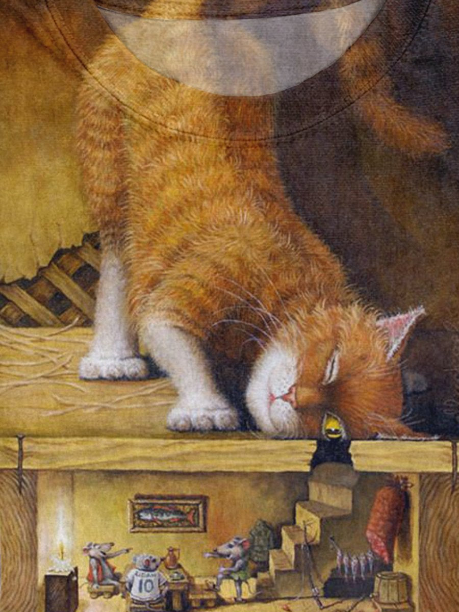 Vintage Funny Cat Art Print Casual Short Sleeve T-shirt
