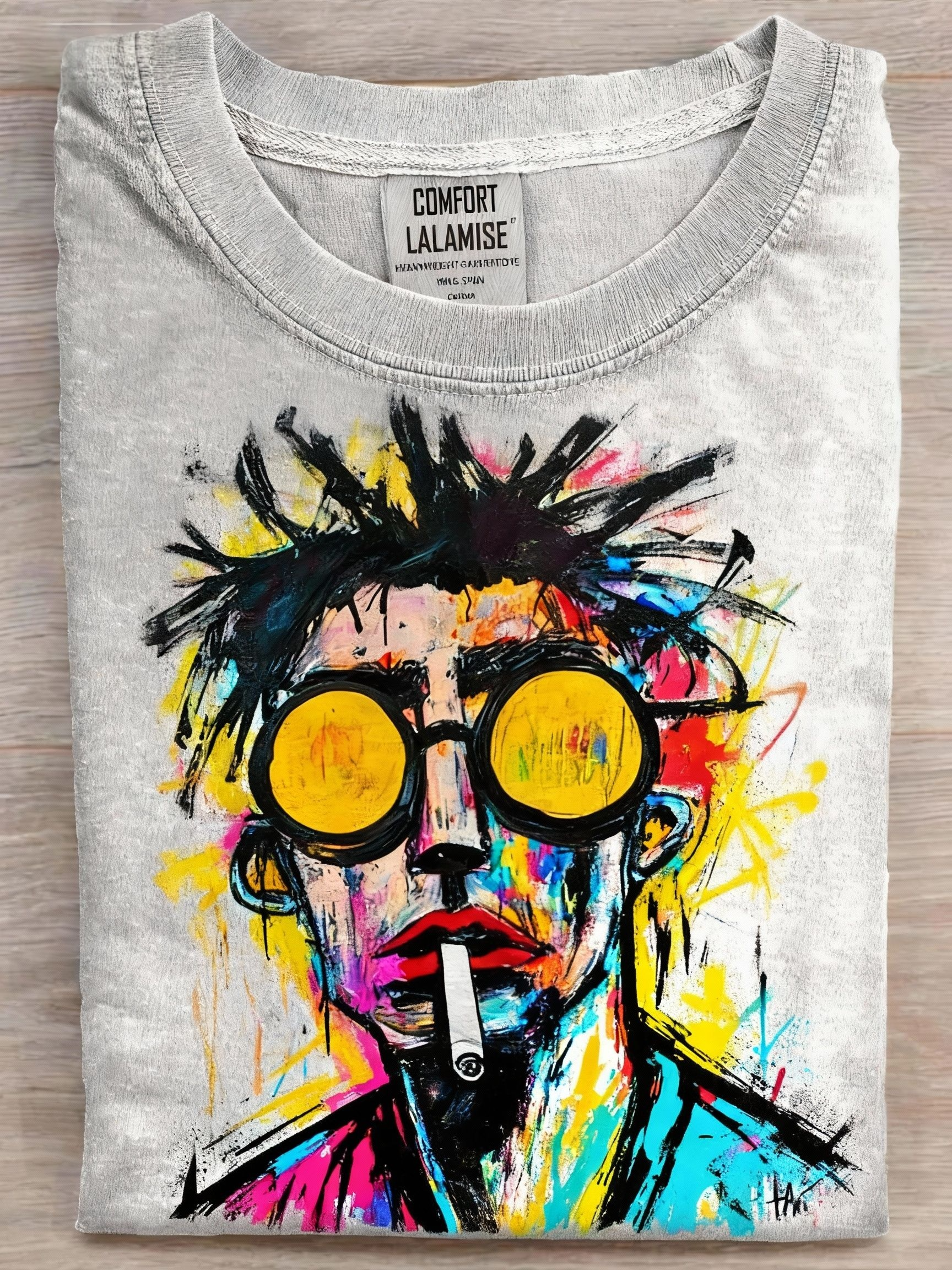 Fun Humor Satire Art Print Casual Pure Cotton Short Sleeved T-shirt