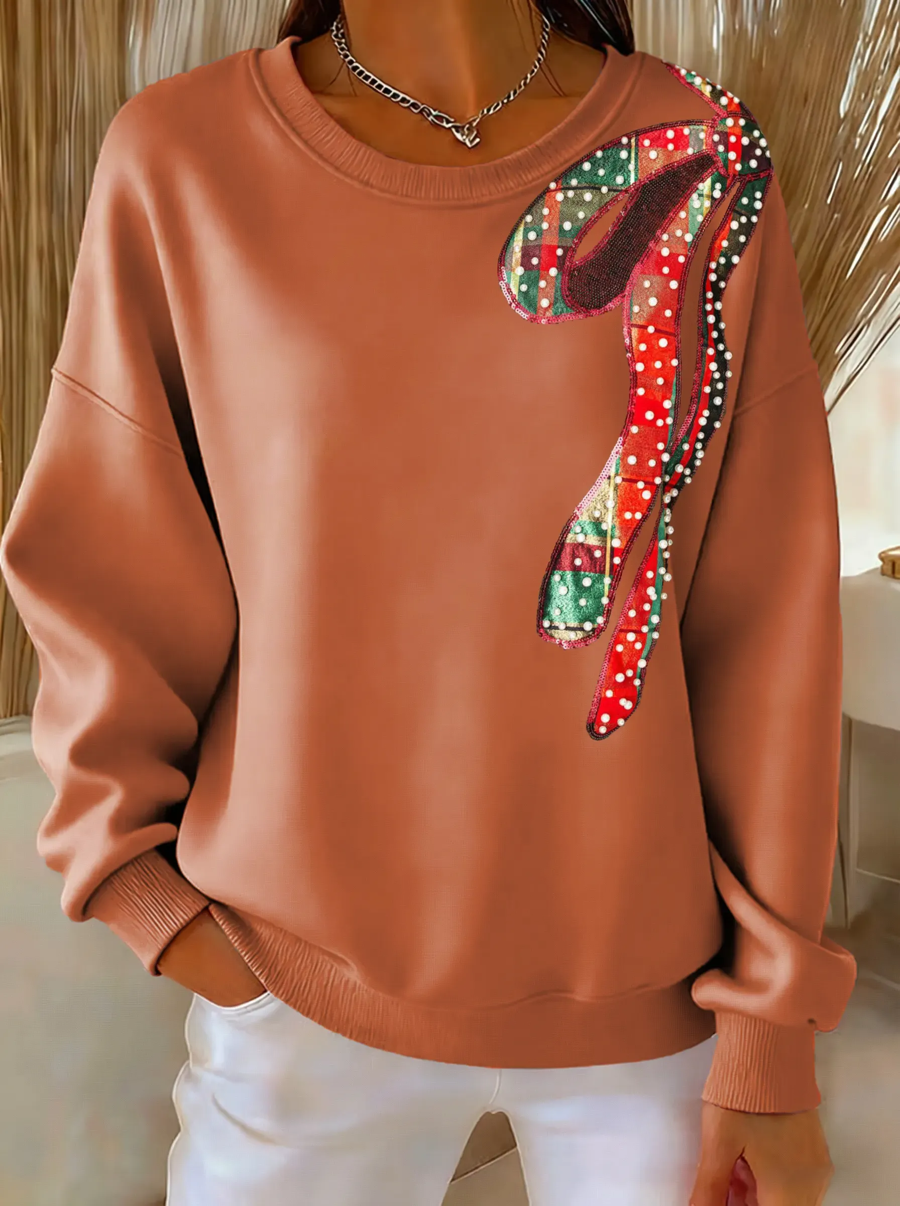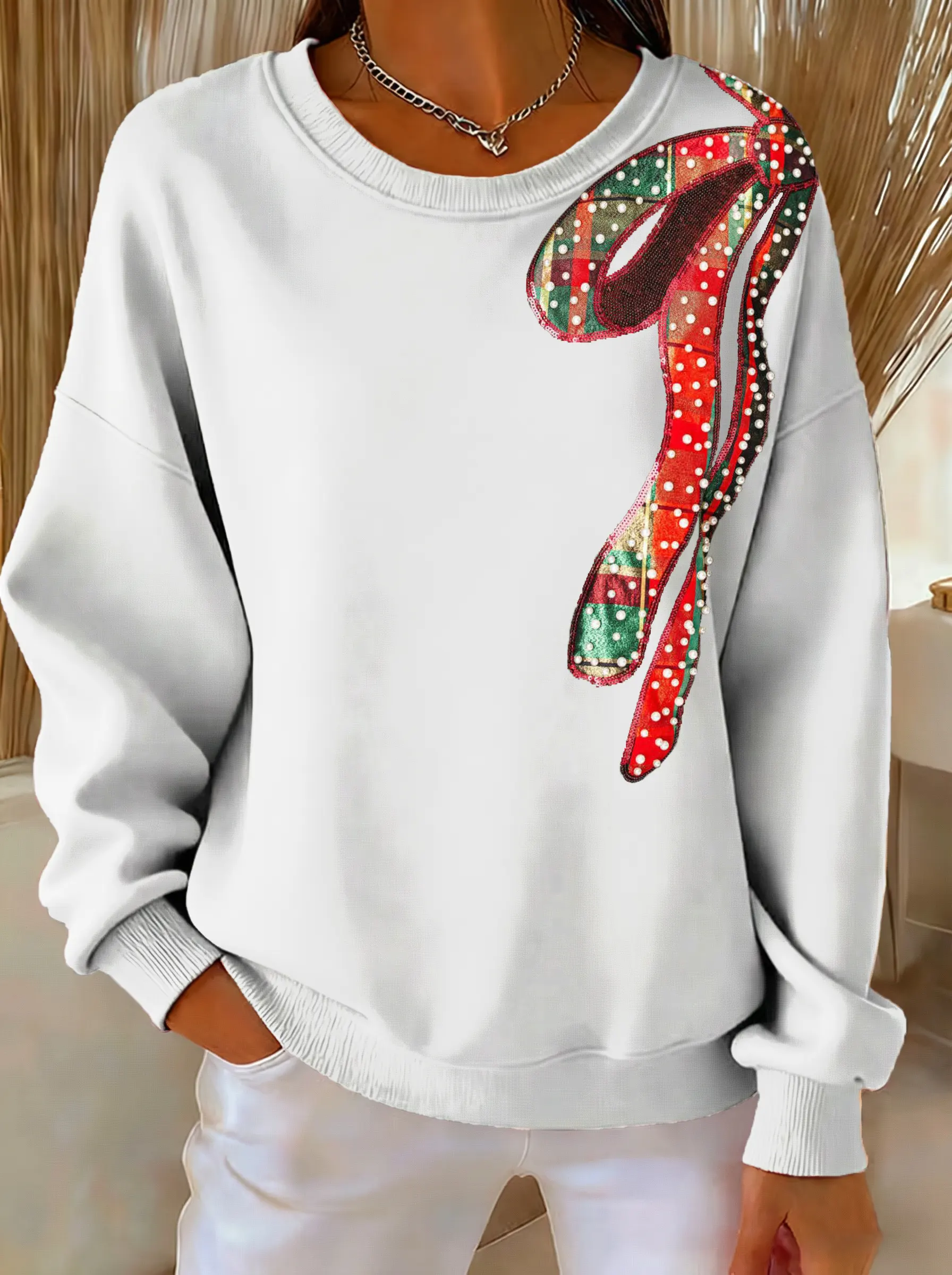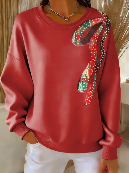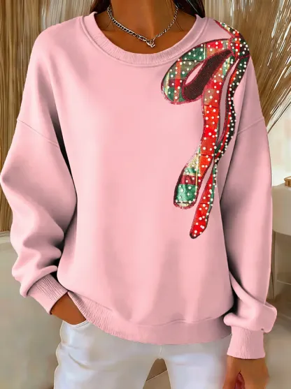 Christmas Bow Tie Print Casual Sweatshirt