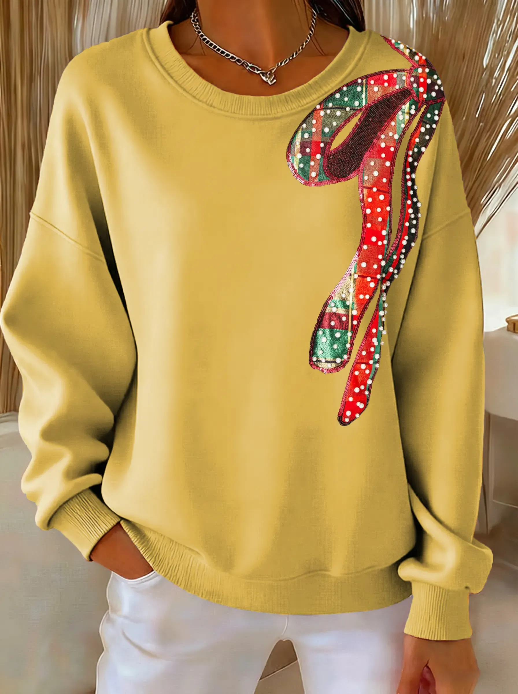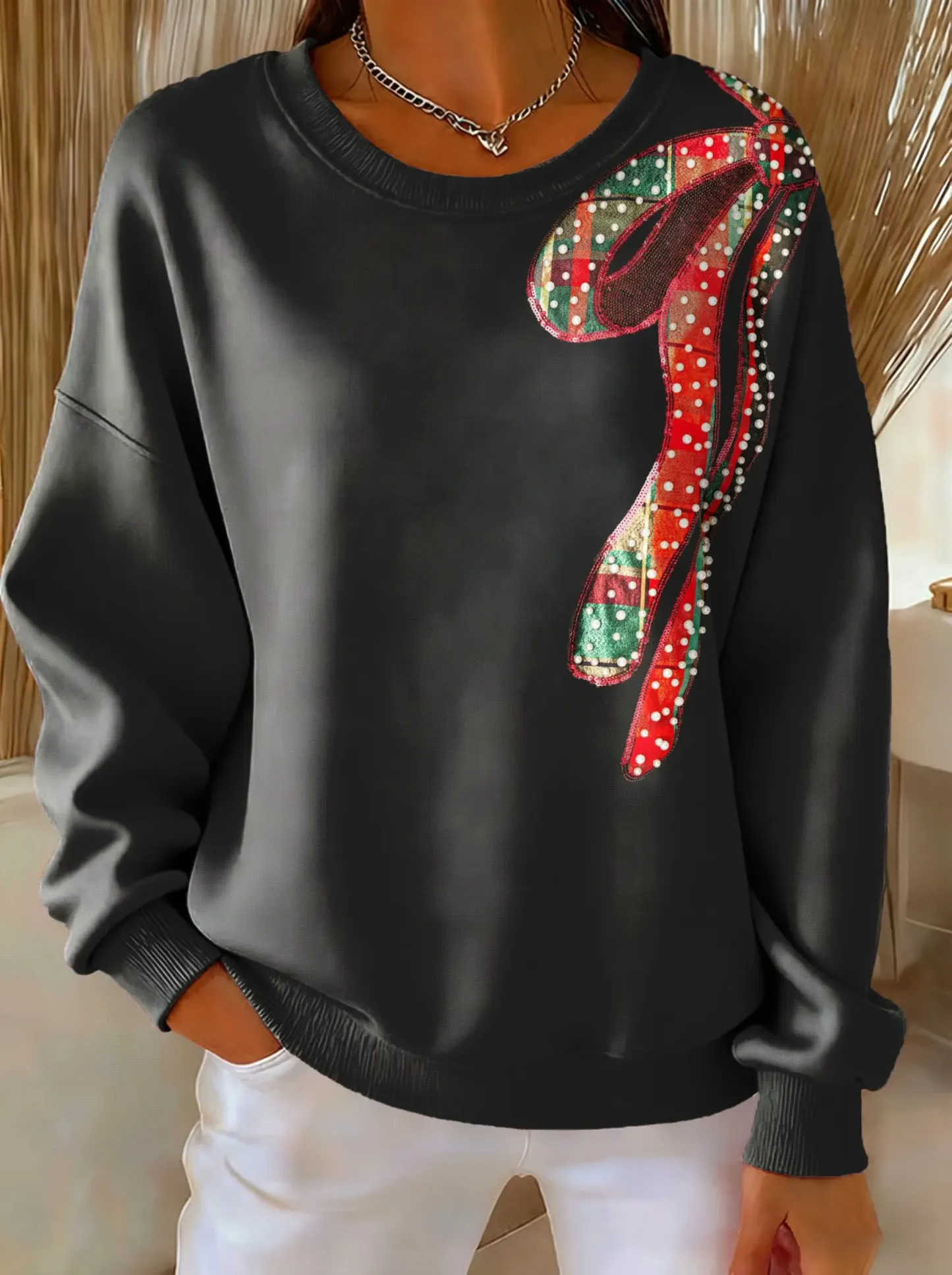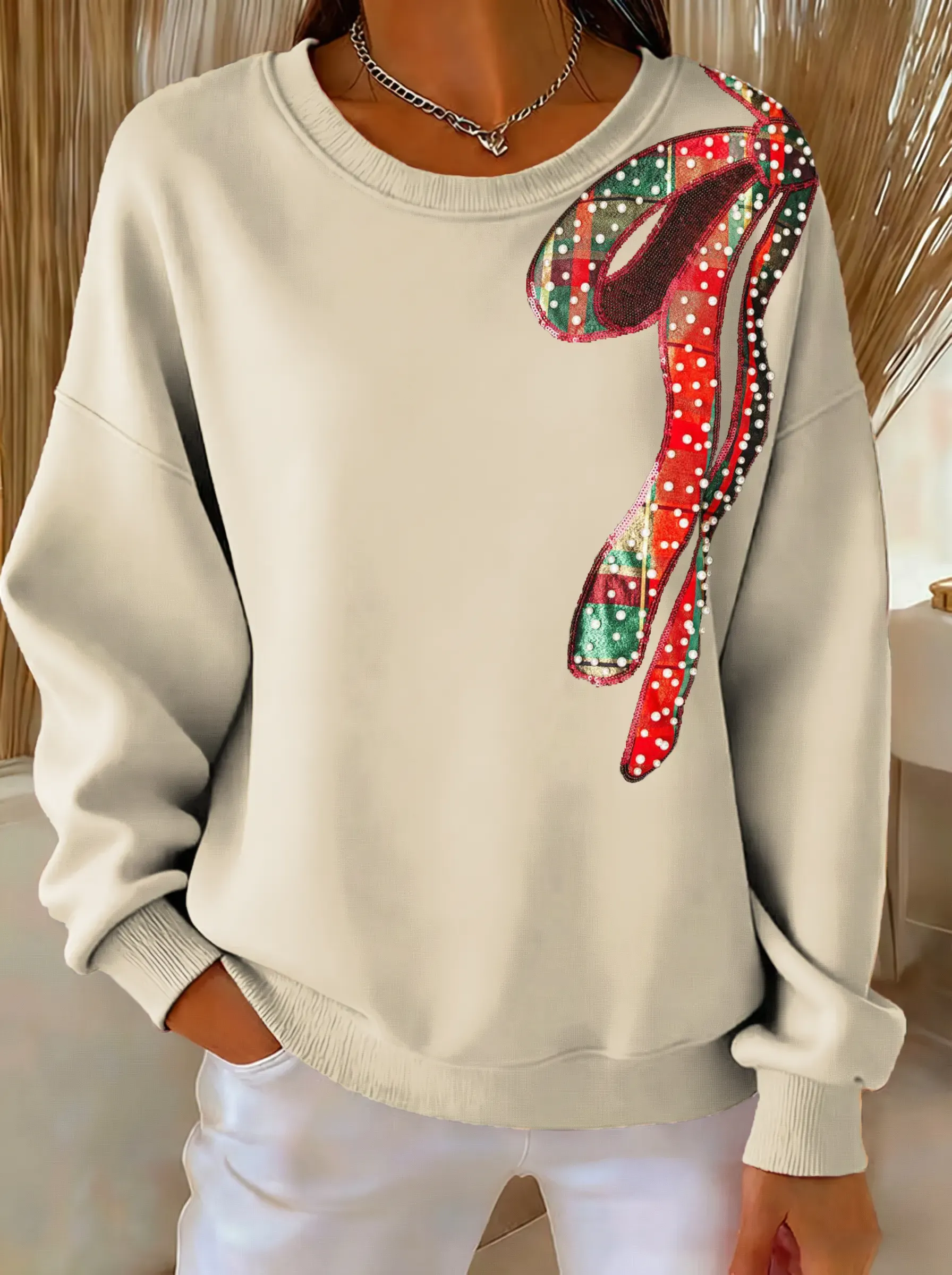 Christmas Bow Tie Print Casual Sweatshirt