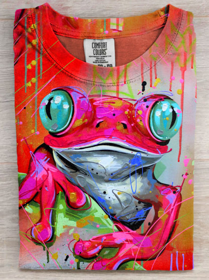Fancy Multicolor Frog Art Print Casual Short Sleeve T-shirt