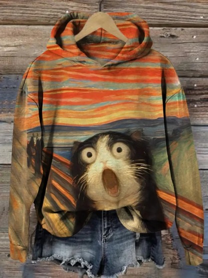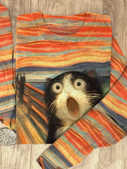 Fun Cat Art Print Casual Cotton Short Sleeve T-shirt