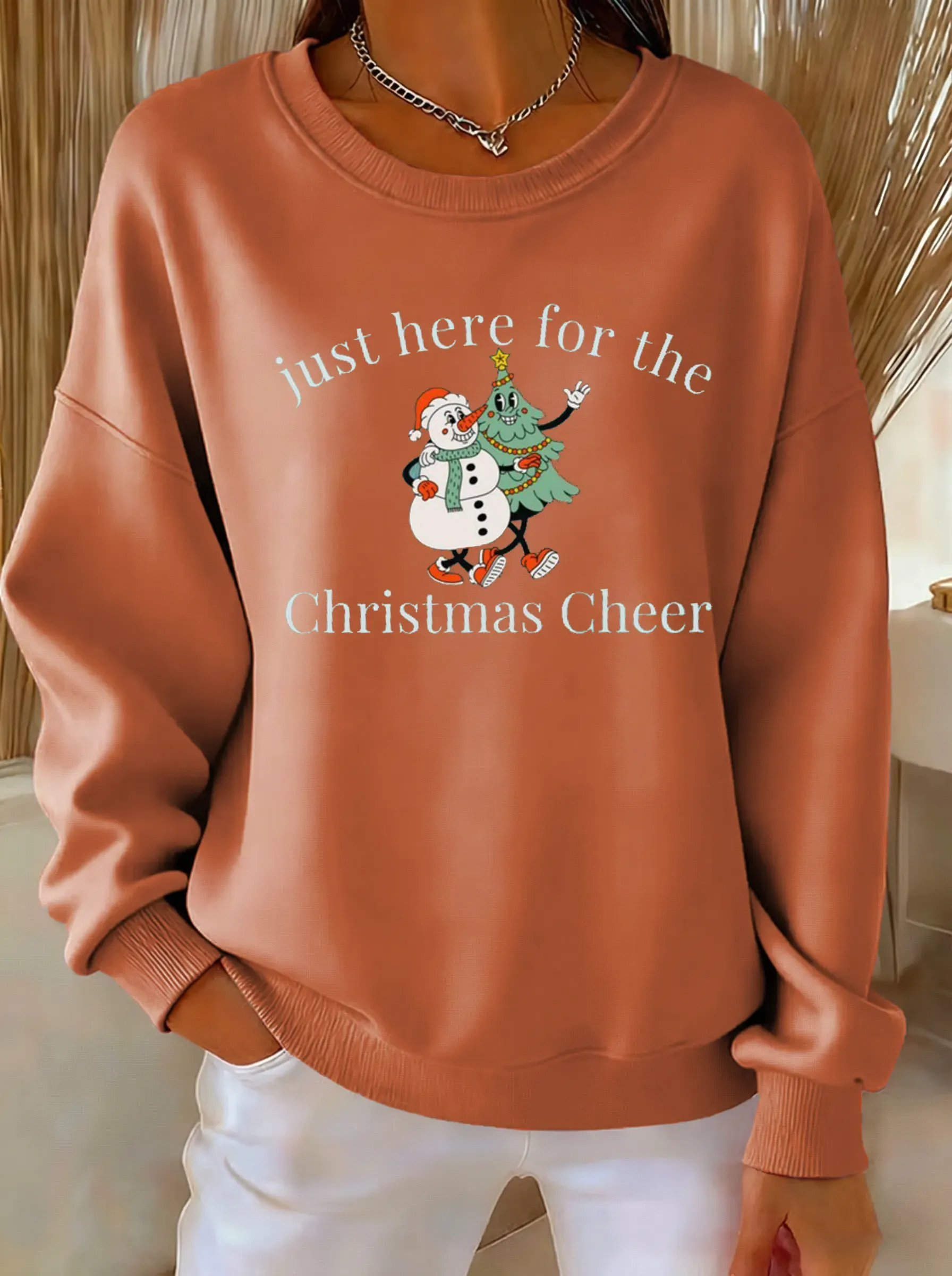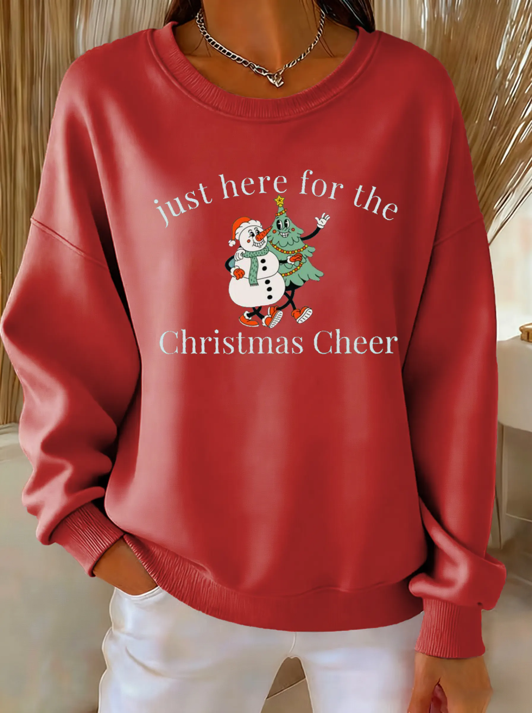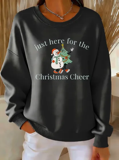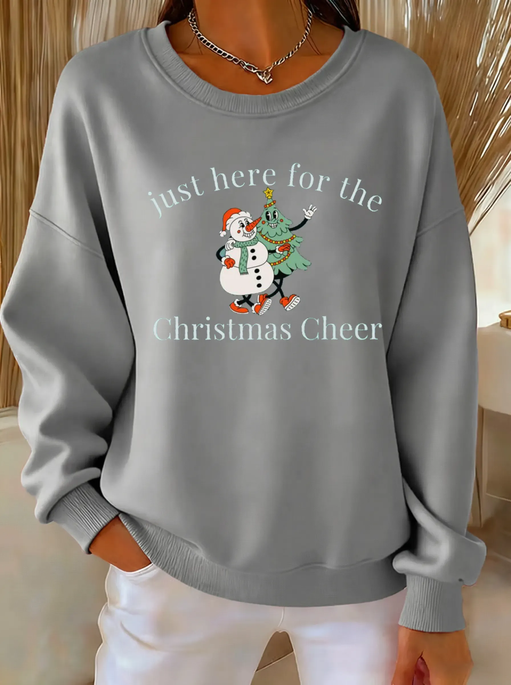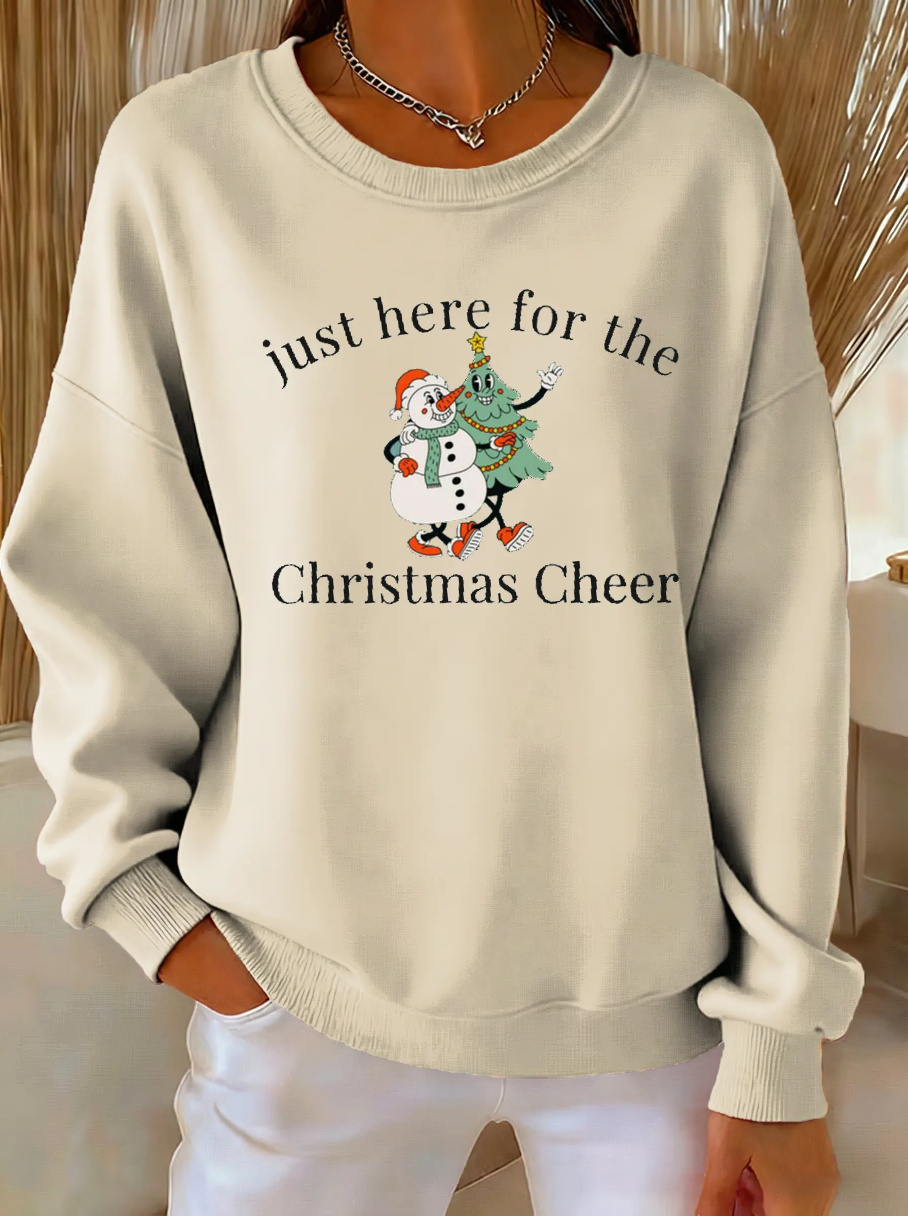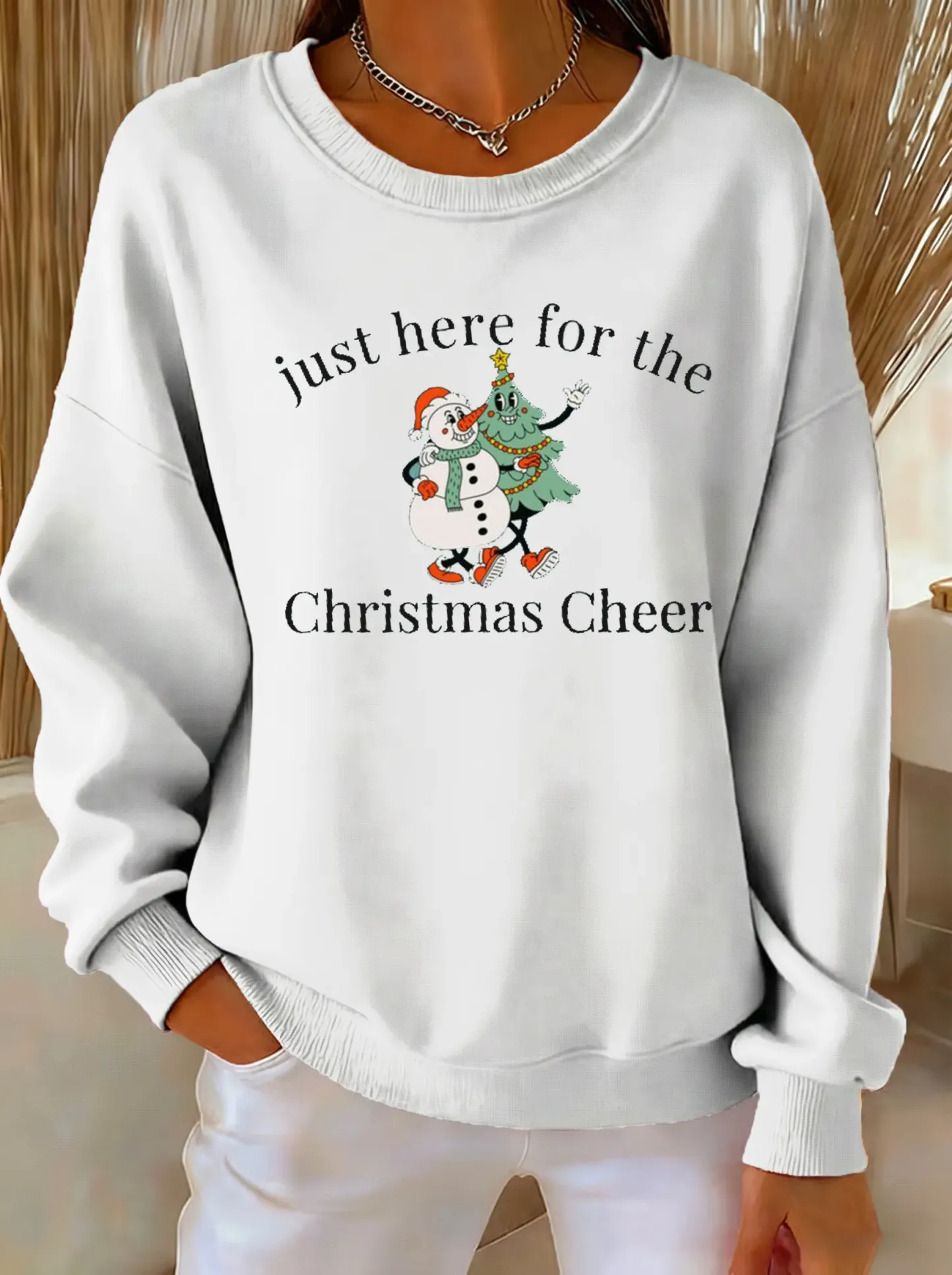 Just Here For The Christmas Cheer Print Casual Sweatshirt