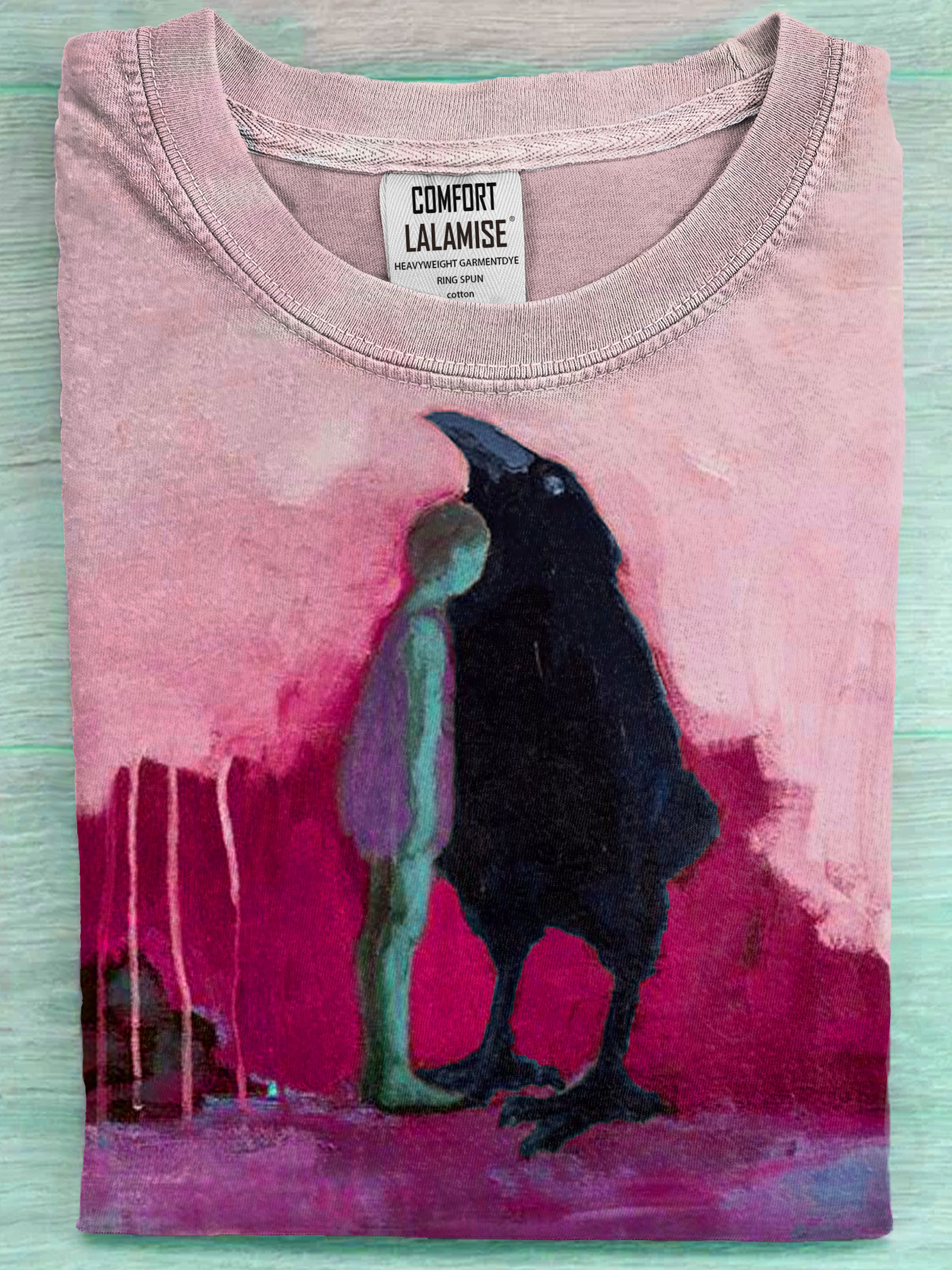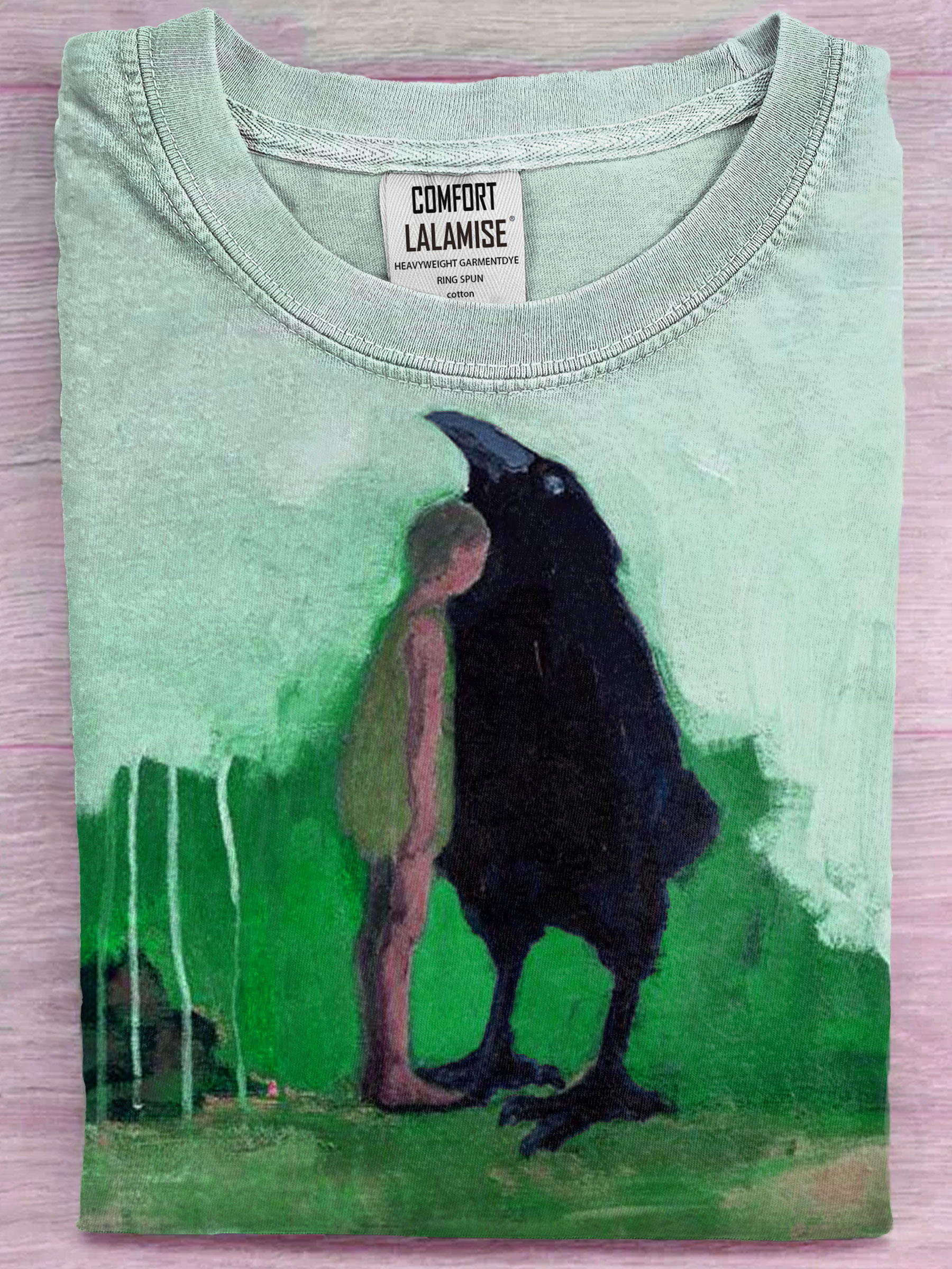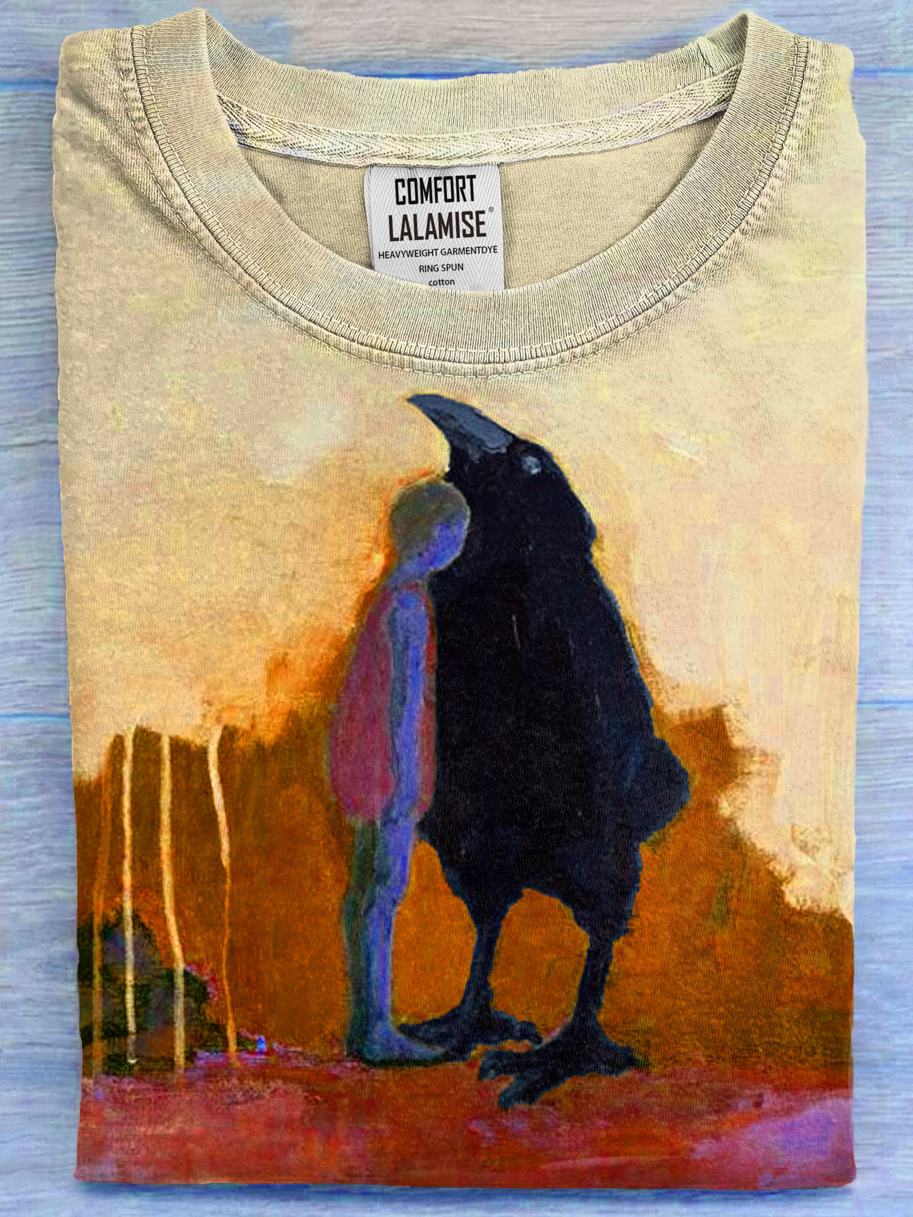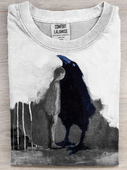 Raven With Human Abstract Art Print Casual Short Sleeve T-shirt