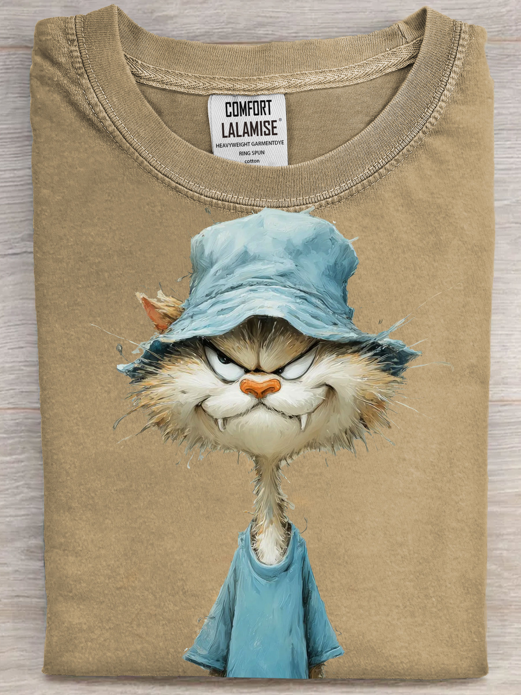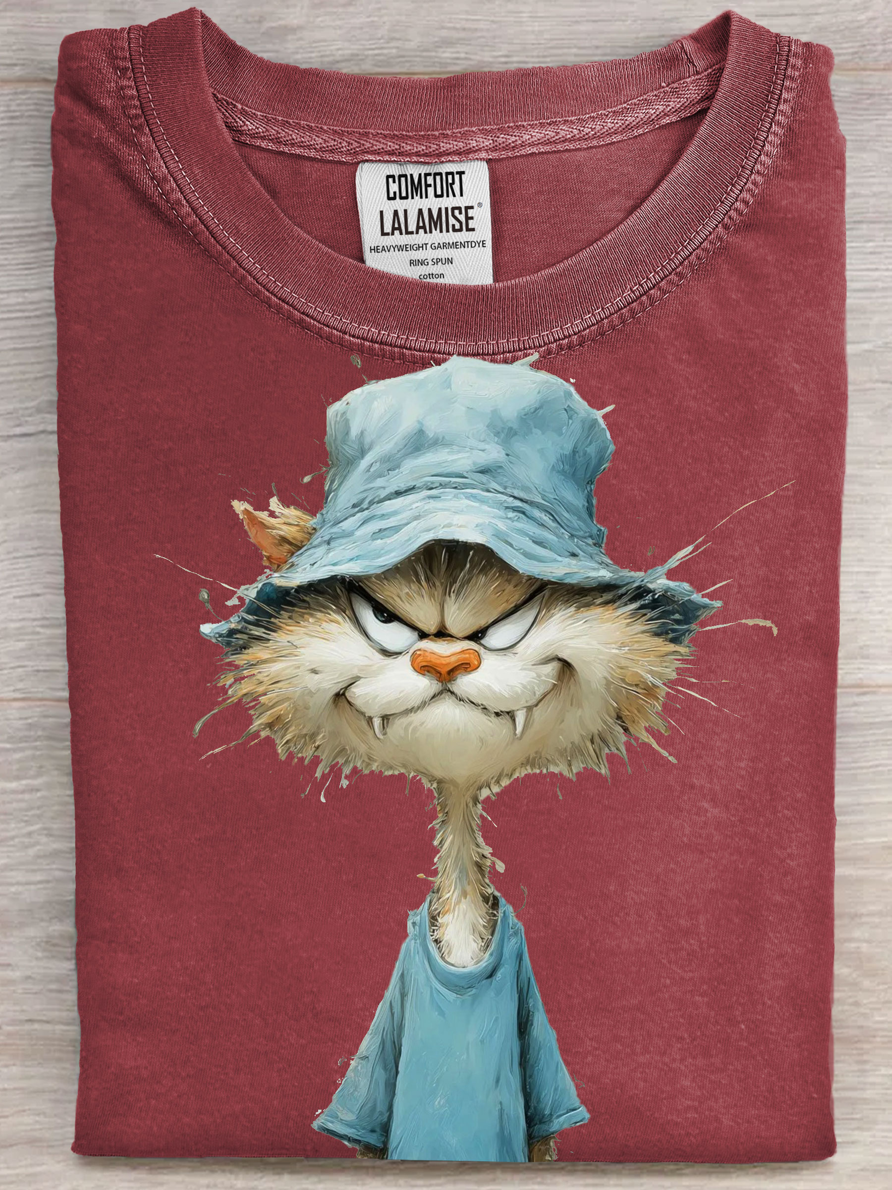 Sly Cat Art Print Casual Short Sleeve T-shirt