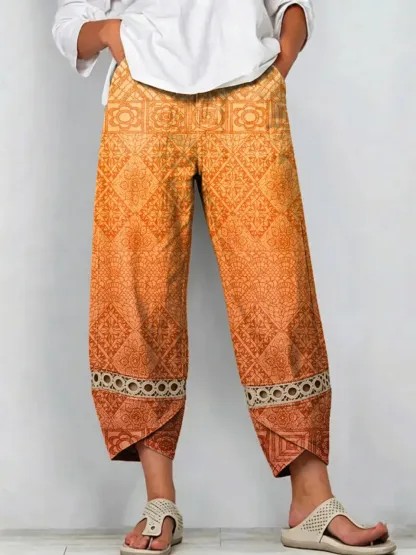 Women's Bohemian Ethnic Floral Art Print Casual Lace-Spliced ​​T-Shirt