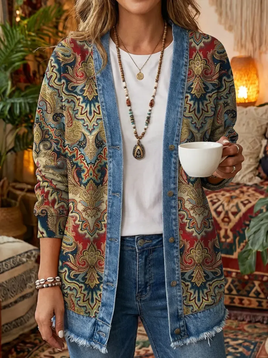 Women's Bohemian Ethnic Floral Art Print Casual Long-sleeved Shirt/jacket
