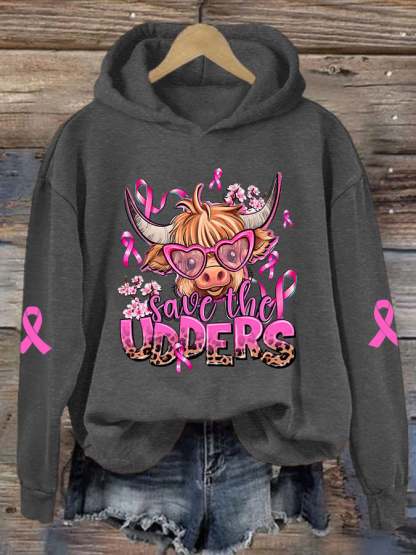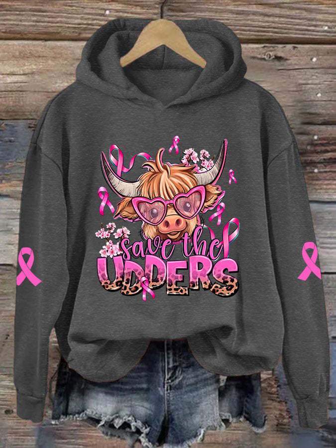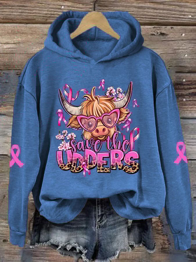 Women's Save The Udders Highland Cattle Print Hoodie